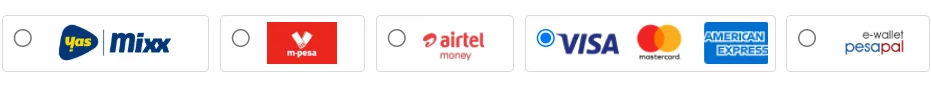 We accept payments via credit/debit cards, mobile money, and bank transfers.
